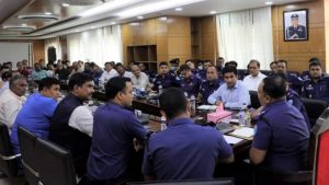 সভাপতির বক্তব্যে চট্টগ্রাম জেলা পুলিশ সুপার এস এম শফিউল্লাহ্, বিপিএম বলেন- শারদীয় দুর্গাপূজা শান্তিপূর্ণভাবে উদযাপনের লক্ষ্যে চট্টগ্রাম জেলা পুলিশ যাবতীয় নিরাপত্তামূলক ব্যবস্থা গ্রহণ করেছে। গুরুত্ব অনুসারে পূজা মন্ডপগুলোকে অতিগুরুত্বপূর্ণ, গুরুত্বপূর্ণ ও সাধারণ শ্রেণিতে বিভক্ত করে সে অনুপাতে অফিসার-ফোর্স মোতায়েন করা হবে। এছাড়া পূজা উদযাপনকালে সড়ক/মহাসড়ক ও গুরুত্বপূর্ণ পয়েন্টে যানজট নিরসনে ট্রাফিক পুলিশ মোতায়েন করা হবে। গুরুত্বপূর্ণ মন্ডপে সিসি টিভি স্থাপনের উদ্যোগ নেয়া হয়েছে। সর্বোপরি সার্বজনীন শারদীয় দুর্গোৎসব শান্তিপূর্ণভাবে উদযাপনের নিমিত্তে সার্বিক নিরাপত্তা পরিকল্পনা প্রণয়ন করা হচ্ছে। আসন্ন দুর্গোৎসব সুষ্ঠু-শান্তিপূর্ণ ও ধর্মীয় ভাবগাম্ভীর্যপূর্ণ পরিবেশে সম্পন্ন করার লক্ষ্যে সরকার প্রদত্ত সকল নির্দেশনা যথাযথাভাবে অনুসরণ করা হবে মর্মে তিনি দৃঢ় প্রত্যয় ব্যক্ত করেন।