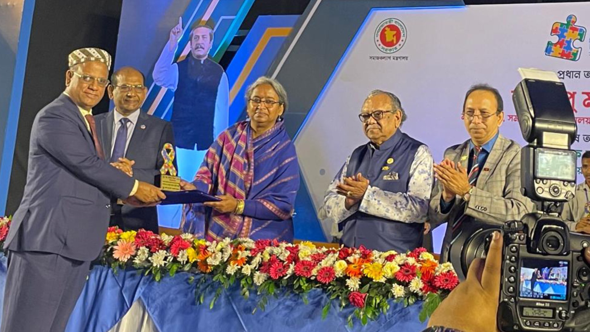 প্রফেসর (ডাঃ) মাহমুদ আহমেদ চৌধুরীর অনুপস্থিতিতে তার পক্ষে উক্ত সম্মাননা গ্রহণ করেন চট্টগ্রাম মা ও শিশু হাসপাতালের কার্যনির্বাহী কমিটির প্রেসিডেন্ট সৈয়দ মোহাম্মদ মোরশেদ হোসেন ও উপ-পরিচালক (প্রশাসন) মোহাম্মদ মোশাররফ হোসাইন। সমাজকল্যাণ মন্ত্রণালয়ের মাননীয় সচিব মোঃ খায়রুল আলম সেখ এর সভাপতিত্বে আয়োজিত এই অনুষ্ঠানে বিশেষ অতিথি হিসেবে উপস্থিত ছিলেন সমাজকল্যাণ মন্ত্রণালয় সংক্রান্ত সংসদীয় স্থায়ী কমিটির সভাপতি প্রফেসর (ডাঃ) আ ফ ম রুহুল হক এমপি এবং প্রফেসর ডাঃ প্রাণ গোপাল দত্ত এমপি। স্বাগত বক্তব্য রাখেন সমাজকল্যাণ মন্ত্রণালয়ের নিউরো-ডেভেলপমেন্টাল প্রতিবন্ধী সুরক্ষা ট্রাস্ট এর ব্যবস্থাপনা পরিচালক (যুগ্ম সচিব) জনাব মোঃ শাহ আলম।