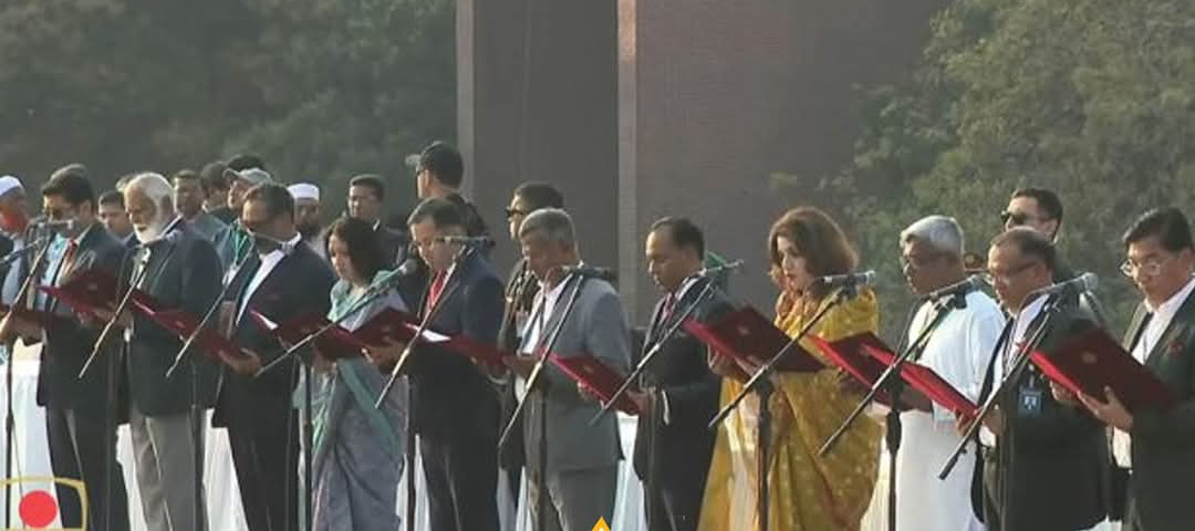 শপথ গ্রহণ করেছেন নতুন মন্ত্রিসভার সদস্যরা। মঙ্গলবার (১৭ ফেব্রুয়ারি) বিকেল ৪টার পর জাতীয় সংসদ ভবন প্রাঙ্গণে রাষ্ট্রপতি, প্রধান উপদেষ্টা এবং নতুন মন্ত্রিসভার সদস্যদের উপস্থিতে এই শপথ গ্রহণ অনুষ্ঠান অনুষ্ঠিত হয়।অনুষ্ঠানের শুরুর দিকে ত্রয়োদশ জাতীয় সংসদ নির্বাচনে জয়ী বিএনপির চেয়ারম্যান তারেক রহমান ১১তম প্রধানমন্ত্রী হিসেবে শপথ গ্রহণ করেন। মঙ্গলবার জাতীয় সংসদ ভবনের দক্ষিণ প্লাজায় রাষ্ট্রপতি মো. সাহাবুদ্দিন তাকে শপথ পড়ান।এরপর মন্ত্রীদের শপথ পড়ানো হয়, তারপর শপথ পাঠ করেন প্রতিমন্ত্রীরা।