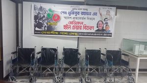 বঙ্গবন্ধু শেখ মুজিবুর রহমানের স্বদেশ প্রত্যাবর্তন দিবসে- দেবাশীষ পাল দেবুর হুইল চেয়ার হস্তান্তর